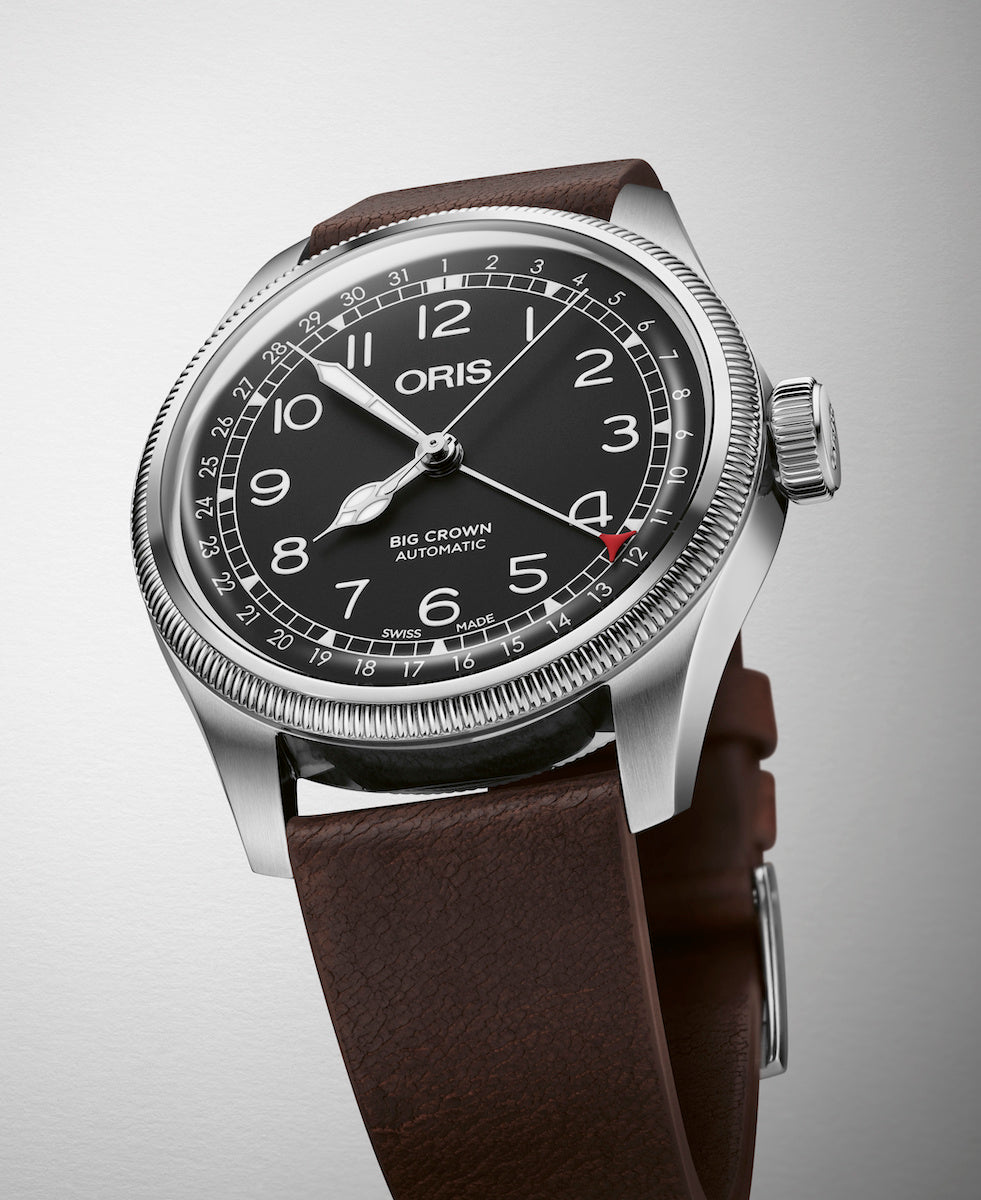 The Oris Big Crown Pointer Date is, without question, the most important watch in Oris' rich history. First introduced in 1938 as a pilot’s watch, it has been a collection mainstay ever since, becoming Oris’s signature design. Its oversized crown was originally intended for gloved airmen but now serves a more aesthetic purpose, while the iconic pointer date function is now internationally recognized as a symbol of Oris’s mechanical inventiveness.
