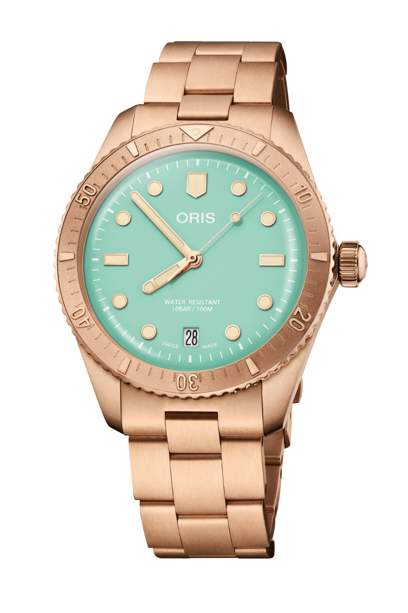 A new start. With spring comes fresh hope, and with it (more so than ever this year) light at the end of a long, dark tunnel. The new Divers Sixty-Five ‘Cotton Candy’ has a simple ambition – to bring a smile. It picks up the all-bronze case, bezel, crown and bracelet combination engineered by Oris for the Hölstein Edition 2020, and adds a peppy palette of dial colours in either sky blue, wild green or lipstick pink.