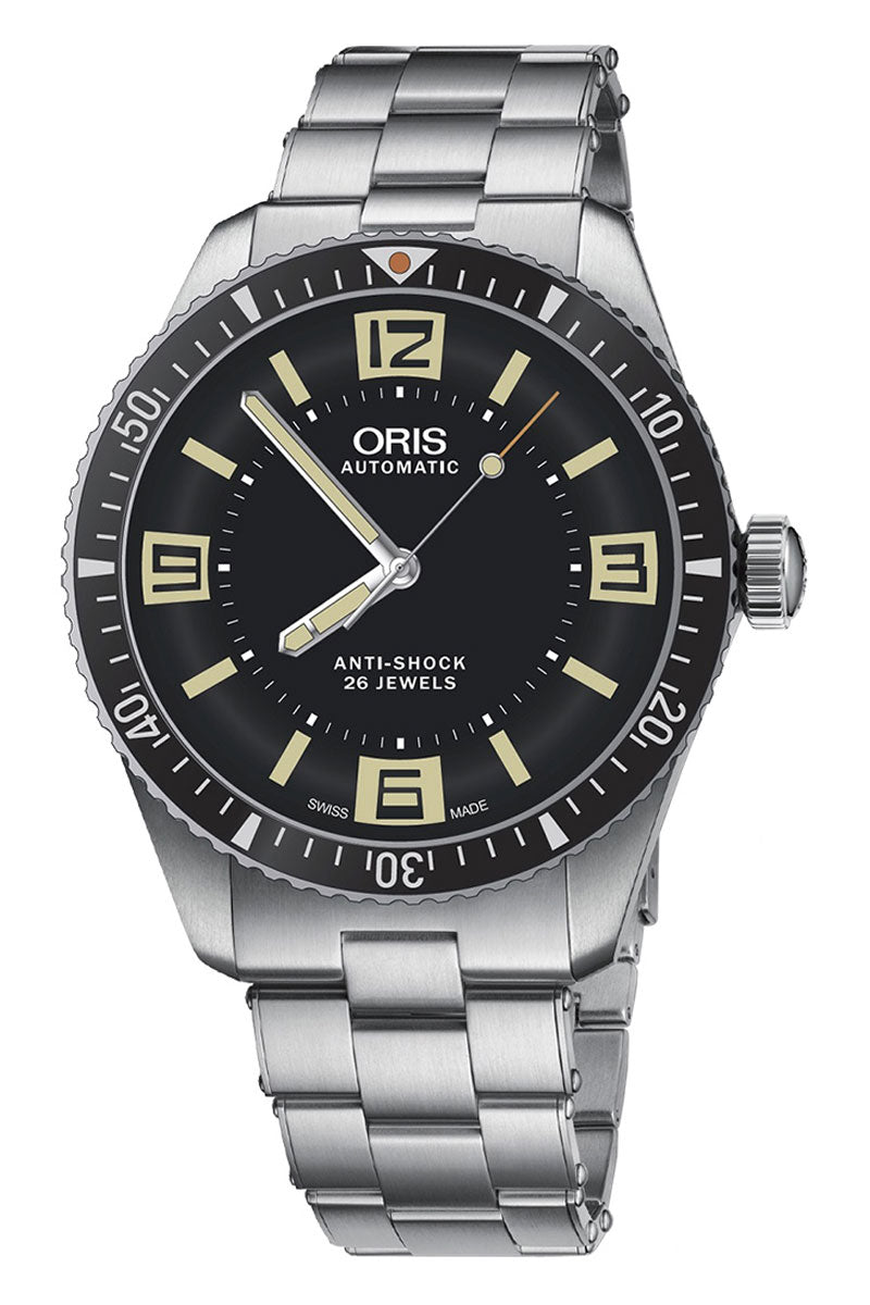 Diving back in Time Oris has dived back in time and is delighted to present the Oris Divers Sixty-Five – a revival of an iconic diver’s watch that first appeared in the Oris collection 50 years ago. The new Oris Divers Sixty-Five shares the retro looks of the 1960s original, but it’s been modernised using 21st century watchmaking techniques. The case is now a more contemporary 40mm in diameter, and it’s made of anti-corrosive stainless steel. The vintage-inspired bubble-curved glass is made of scratch-resistant sapphire crystal and comes with anti-reflective coating on the inside to reduce glare and increase legibility underwater.