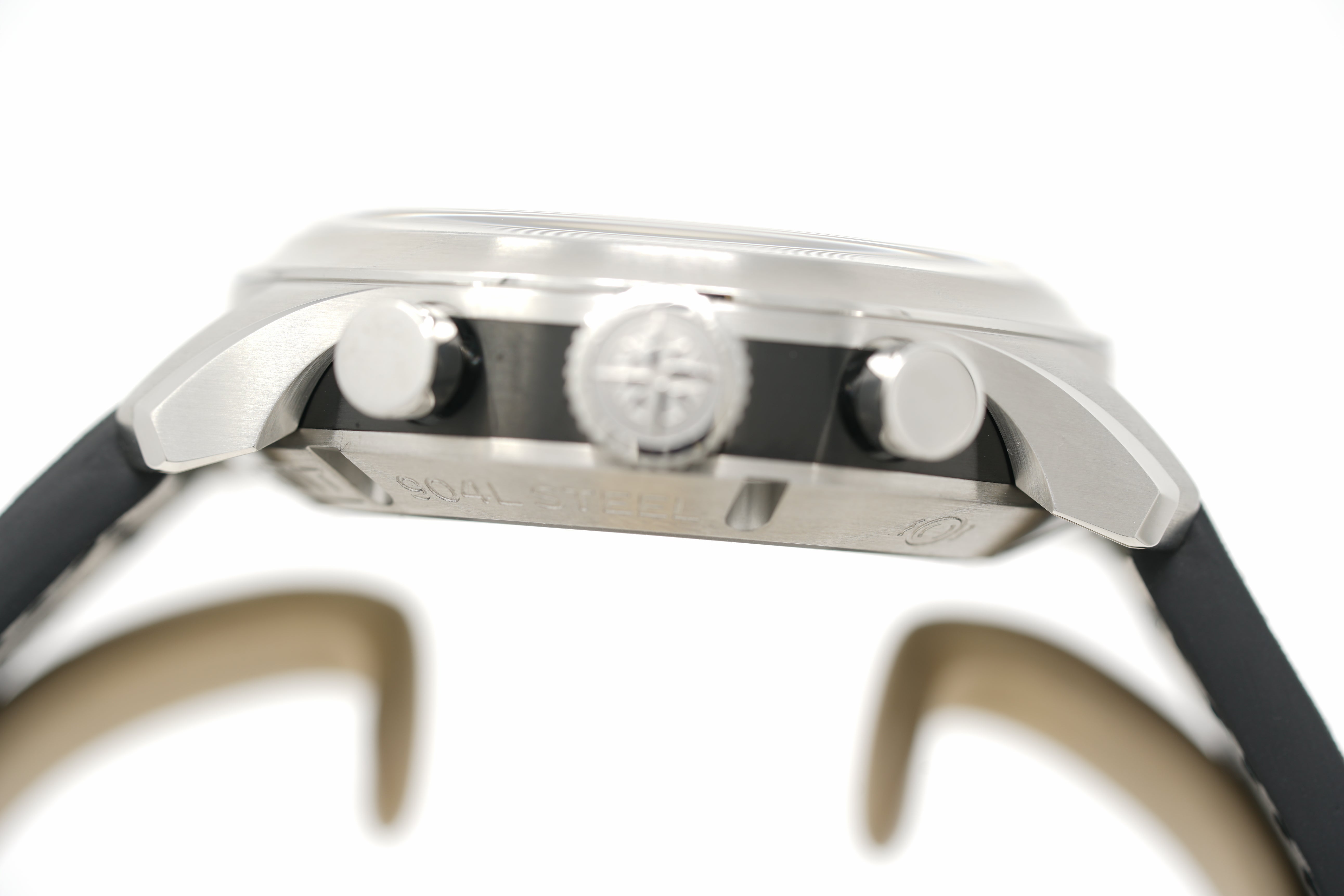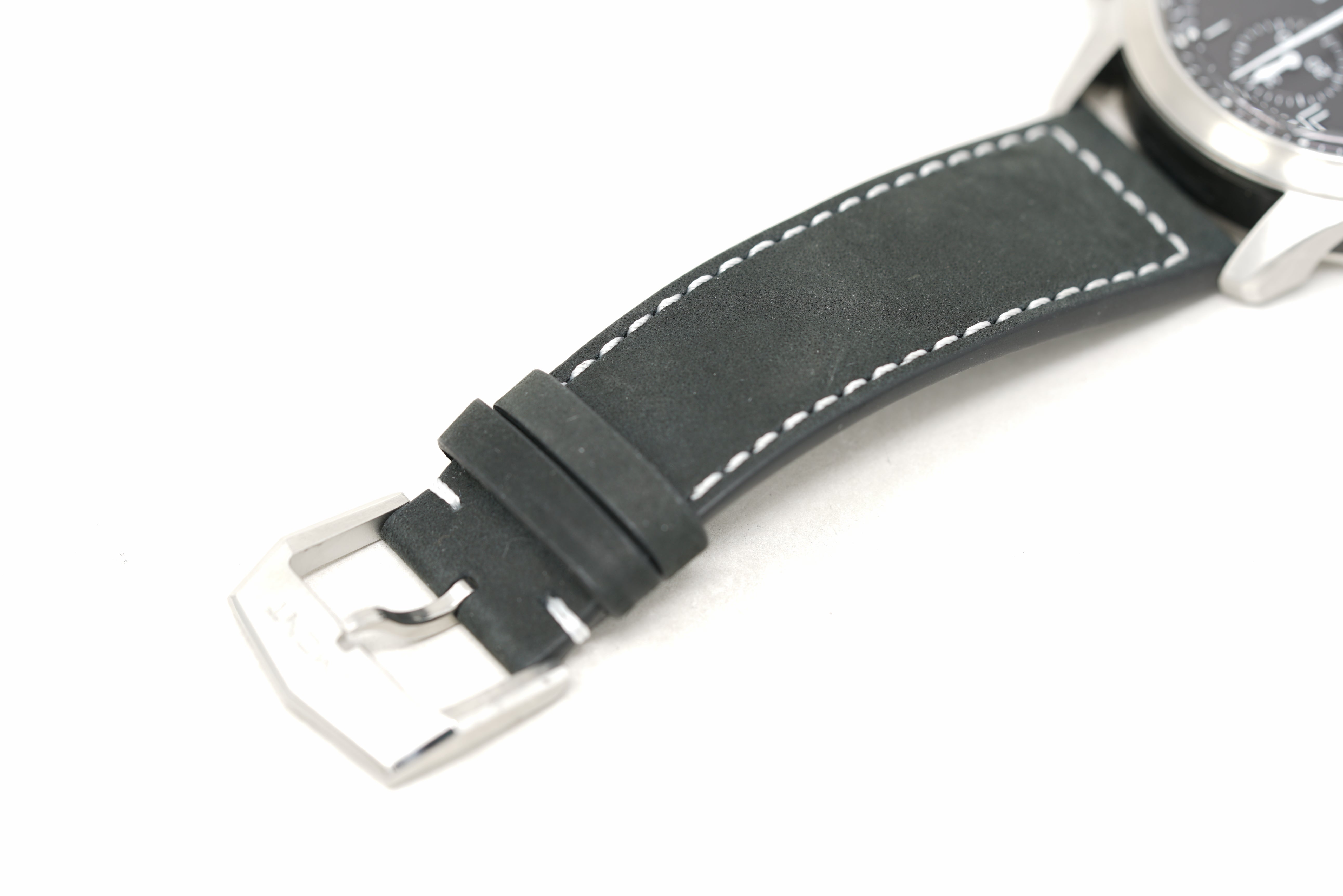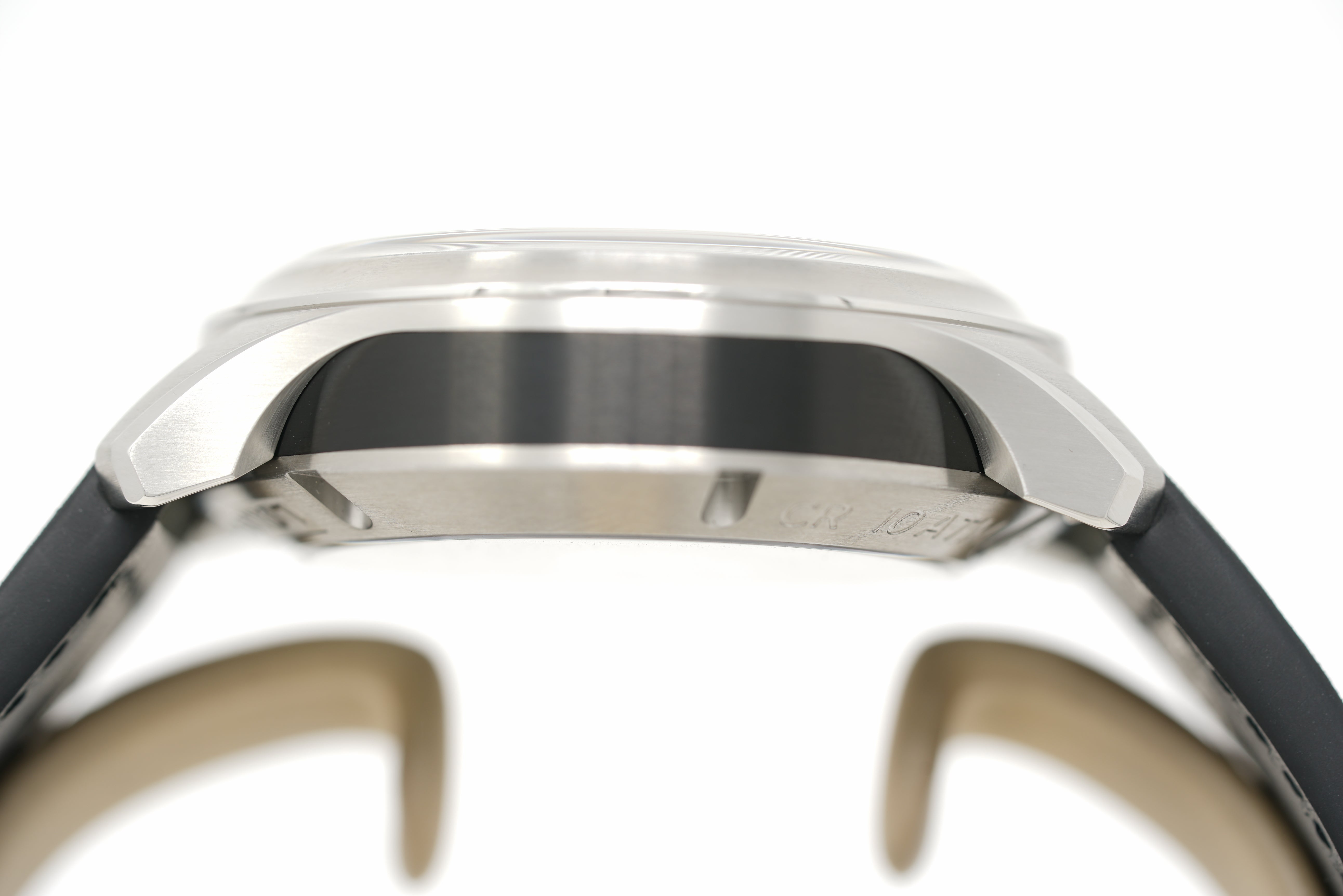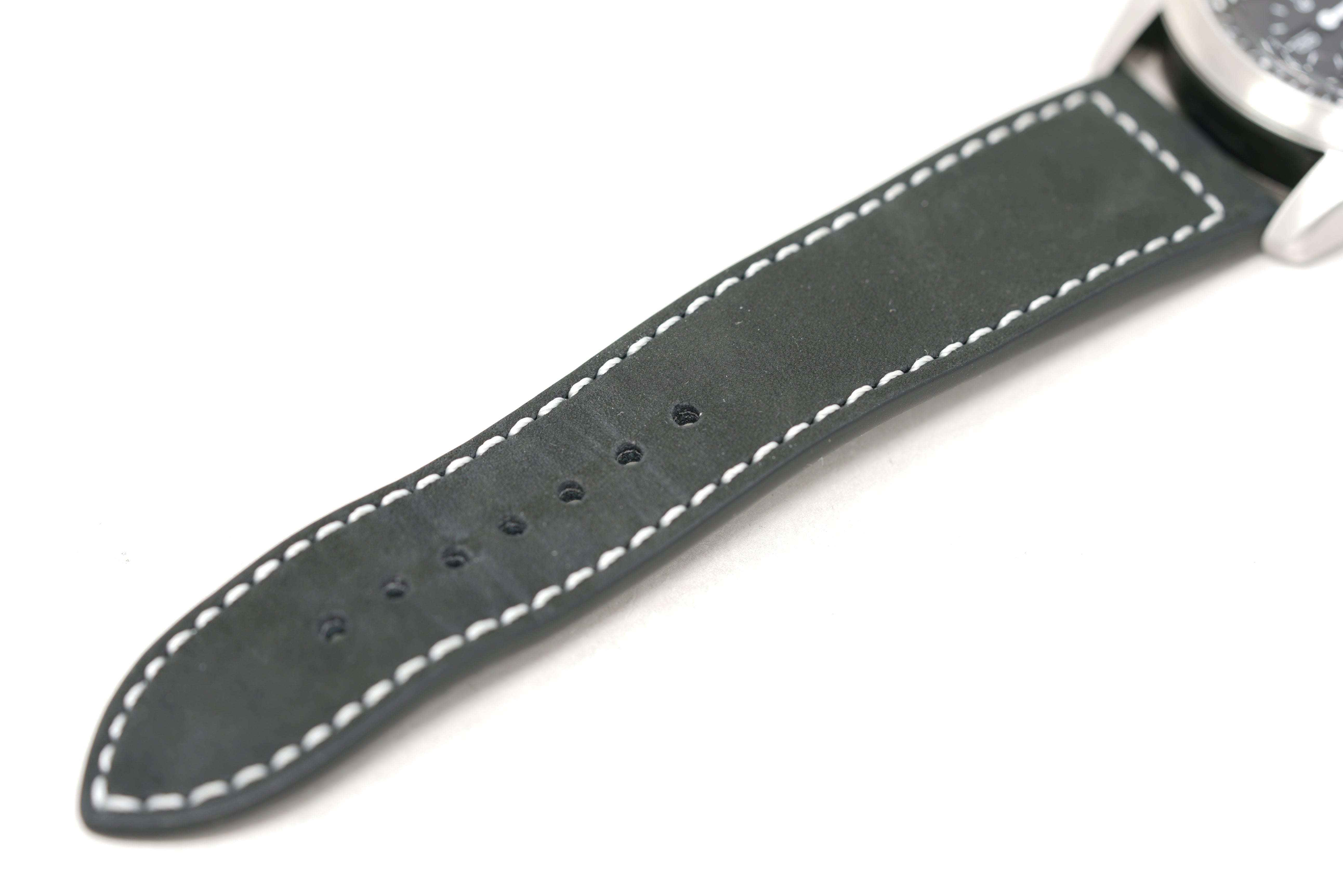 This pre-owned watch is in 95% condition due to faint marks on the sides and back of the case. The strap is in 90% condition due to slight wear and creasing. Originally purchased in December 2025, this watch comes with its inner and outer box, warranty card, and the one-year Topper Pre-Owned Select warranty.