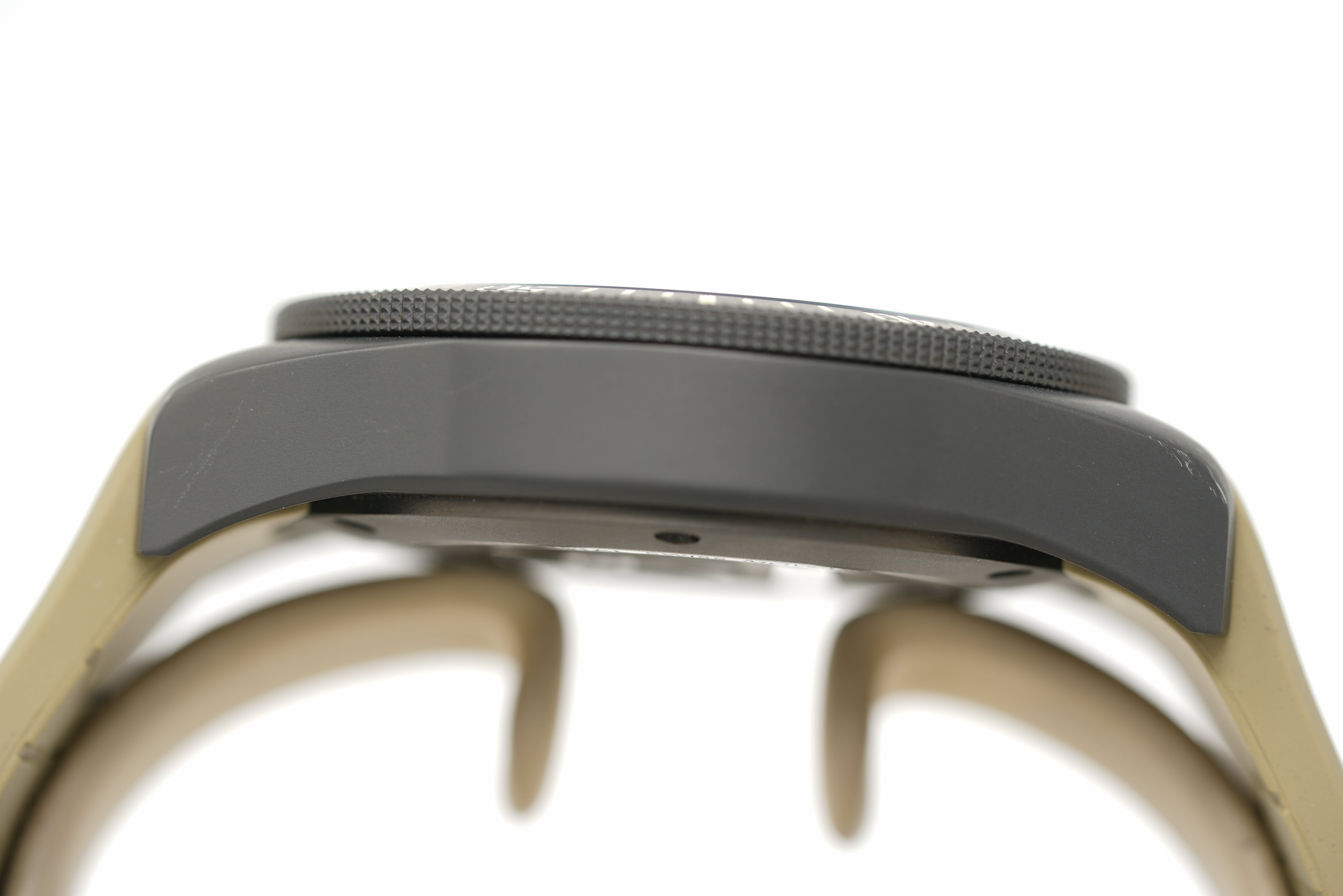 This pre-owned watch is in 88% condition due to slight marks on the lugs and throughout the case. The strap is in 94% condition due to minor wear and creasing. This watch comes with a replacement OEM watch pod, instruction manual, and the one-year Topper Pre-Owned Select warranty.