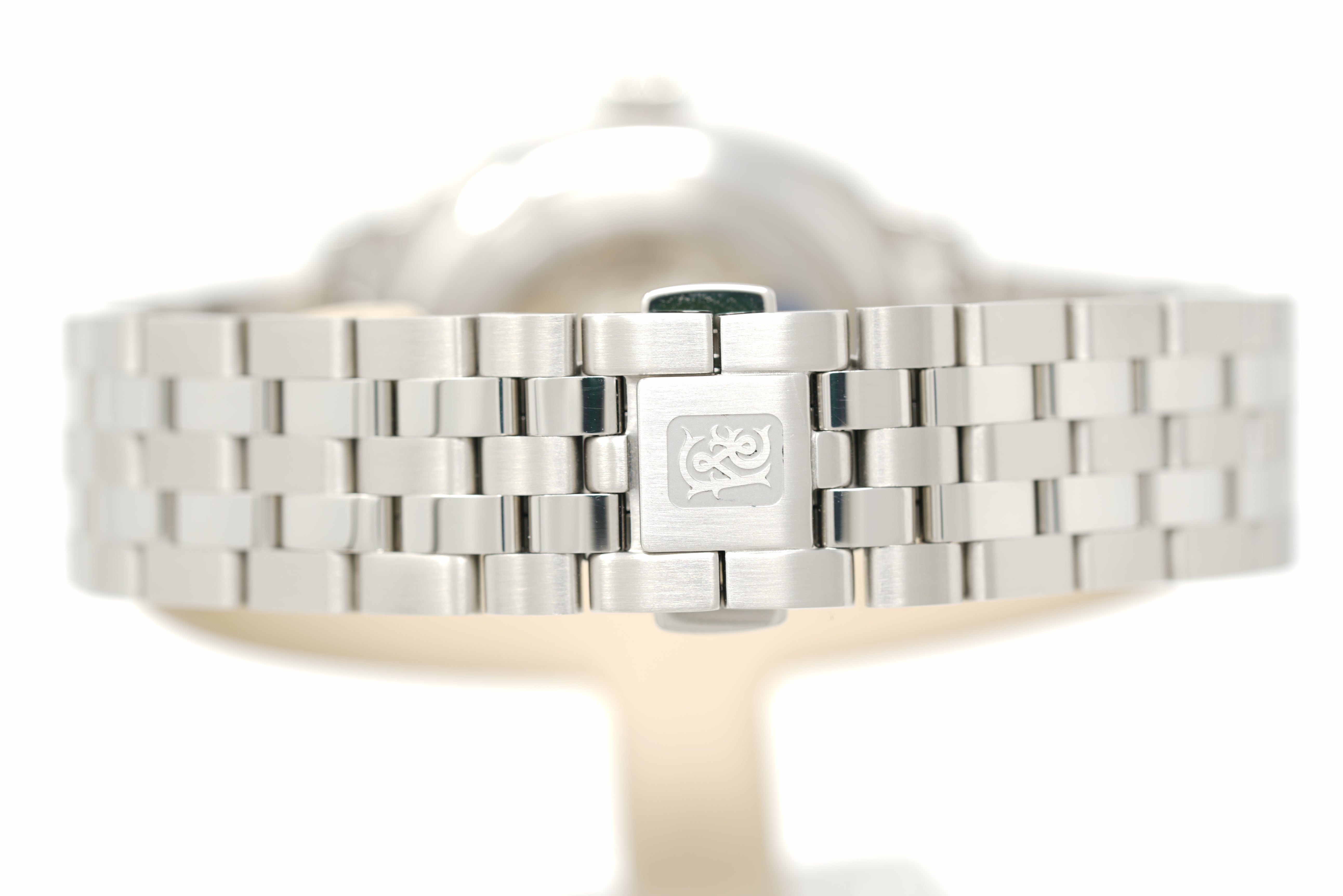 This pre-owned watch is in 93% condition due to slight marks on the bezel and throughout the case. The bracelet is in 94% condition due to faint marks on a few of the links and clasp. Originally purchased in November 2025, this watch comes with its inner and outer box, instruction manual, warranty card, and the one-year Topper Pre-Owned Select warranty.