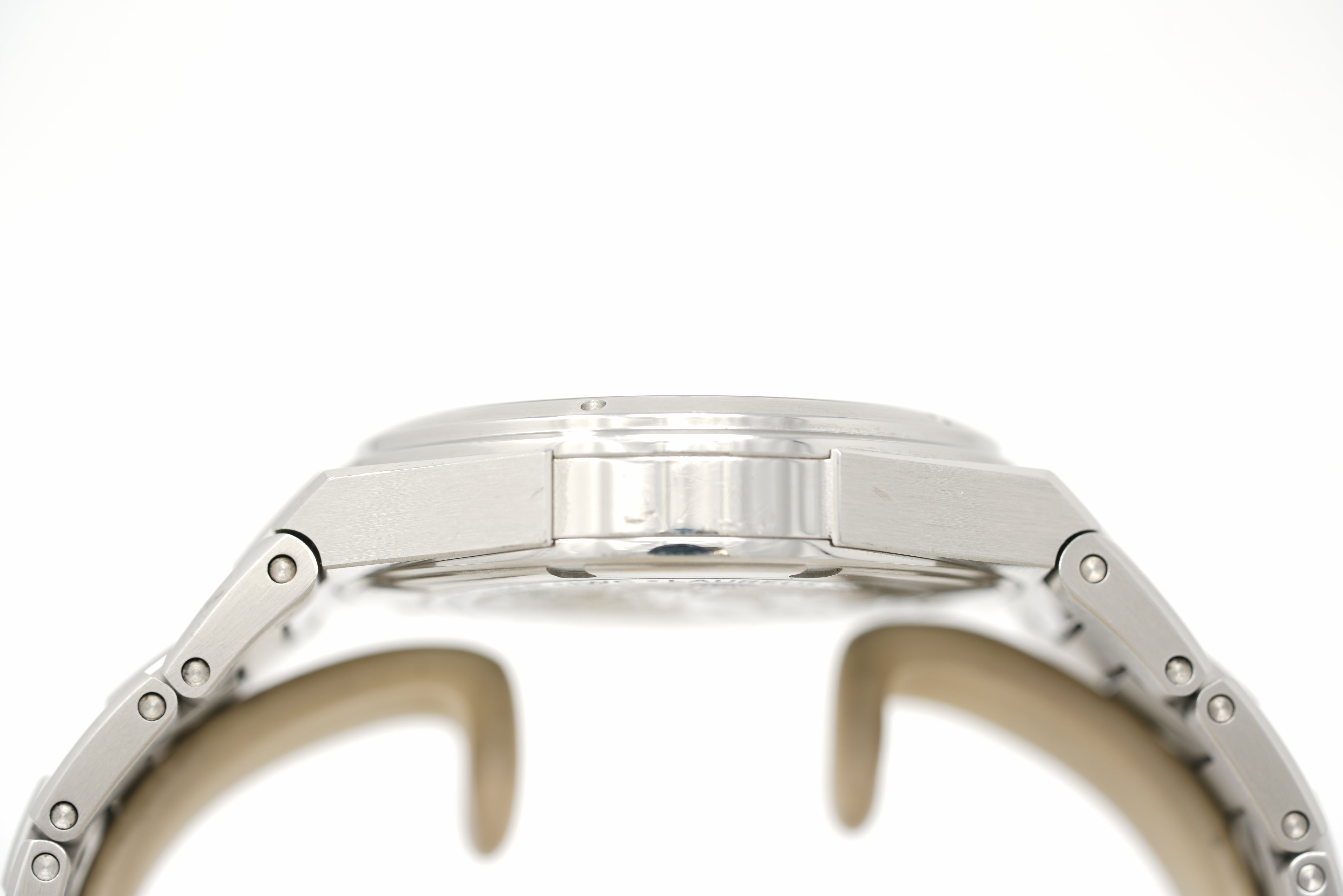 Limited to 1,500 pieces, this pre-owned watch is in 83% condition due to slight marks on the lugs, bezel, and throughout the case. The bracelet is in 79% condition due to slight marks on the links and clasp. This watch comes with its inner and outer box, instruction manual, and the one-year Topper Pre-Owned Select warranty. The original IWC inner box is in fair condition due to peeling.