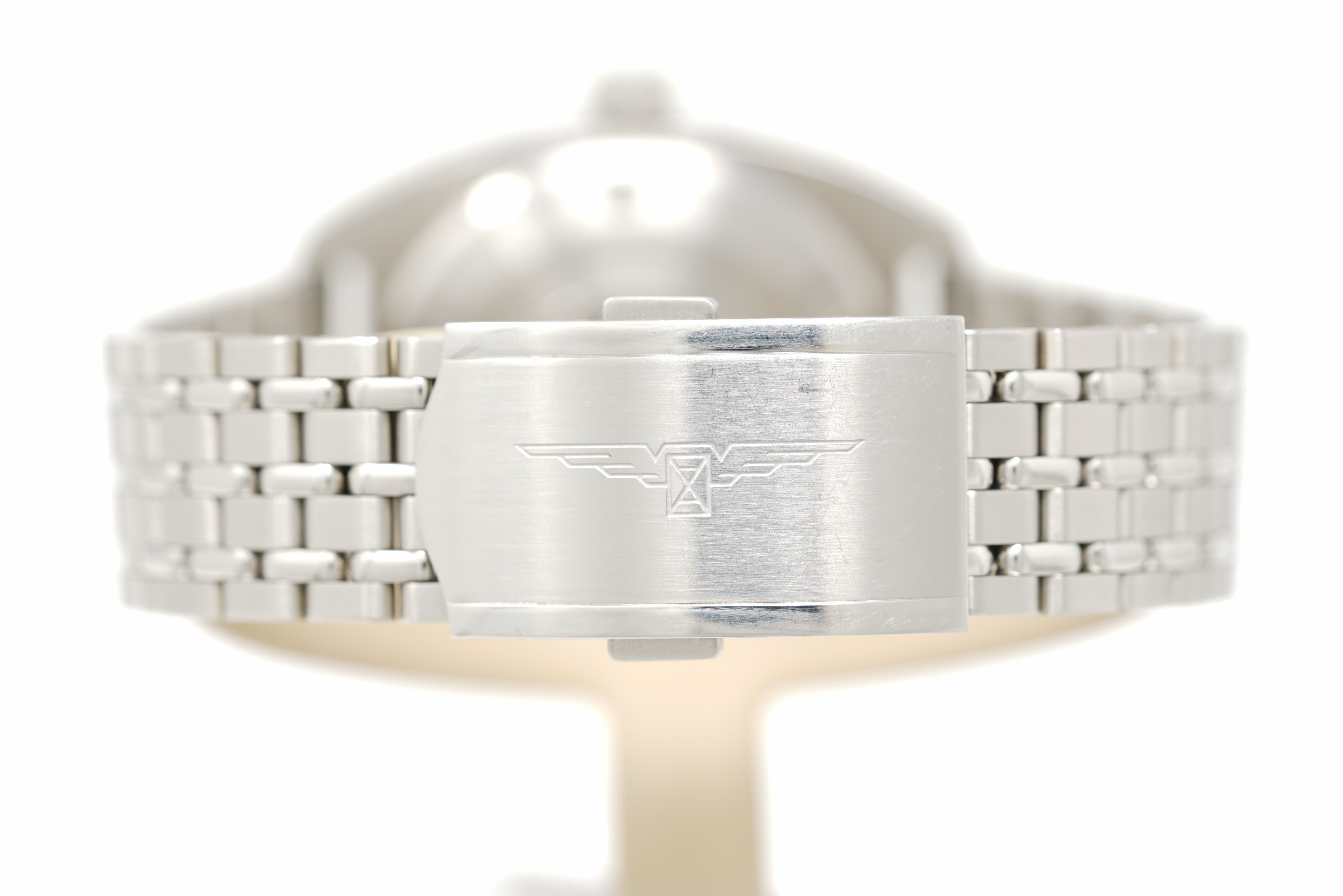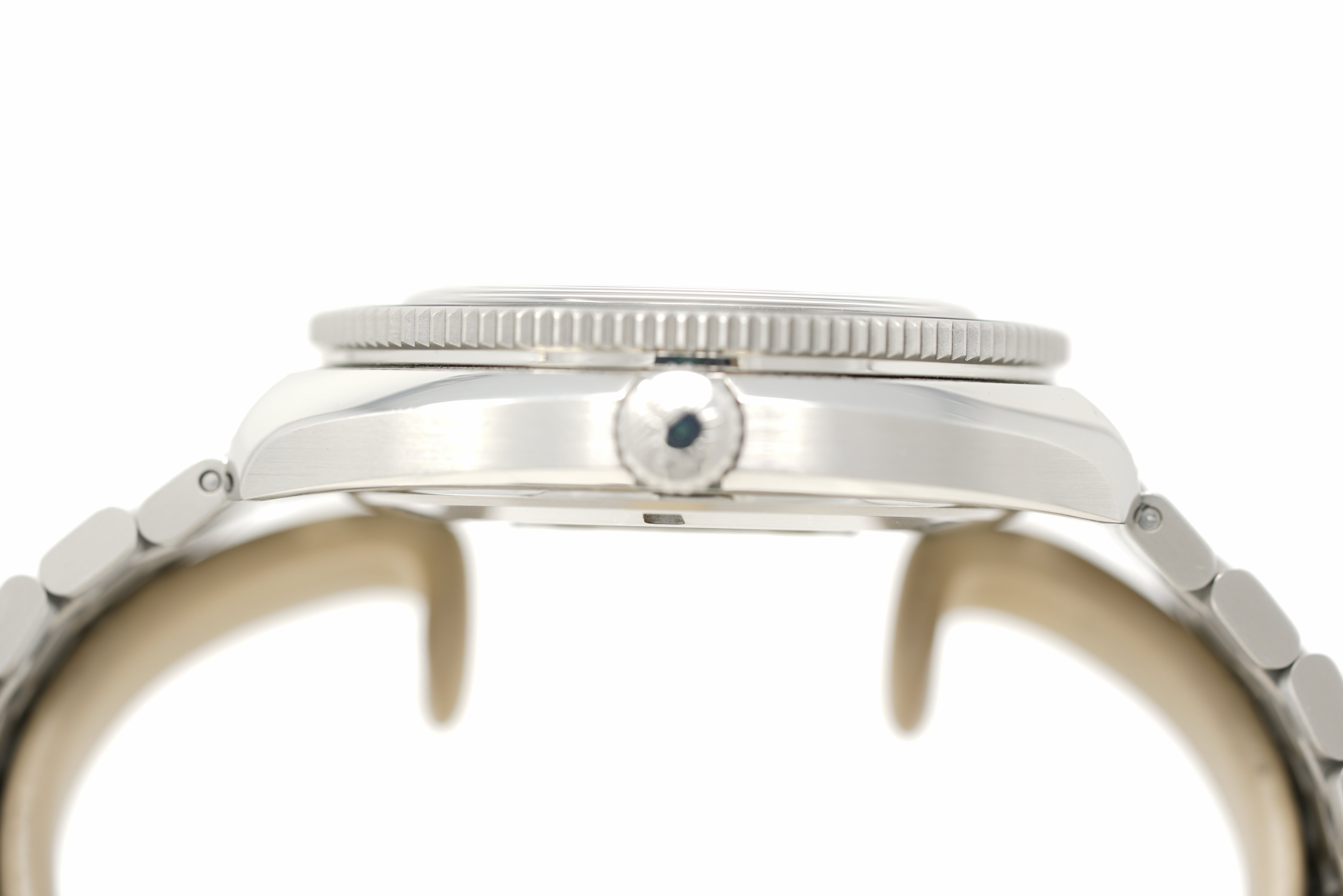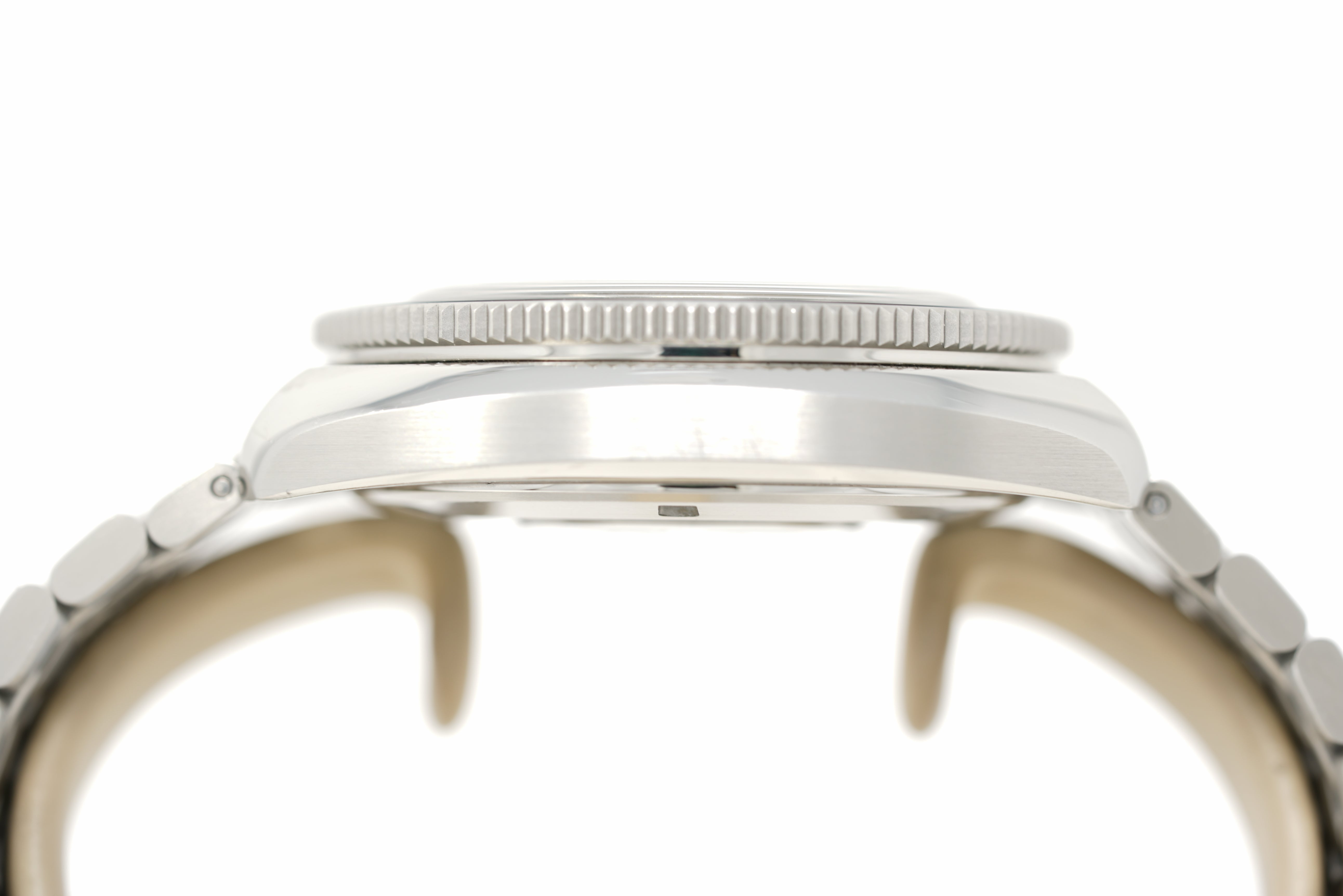 This pre-owned watch is in 83% condition due to marks on the lugs, bezel, and throughout the case. The bracelet is in 83% condition due to marks on the links and clasp. Also included is an OEM strap in 97% condition due to minor wear. Originally purchased in August 2023, this watch comes with its inner and outer box, instruction manual, warranty card, chronometer certificate, hangtag, and the one-year Topper Pre-Owned Select warranty.