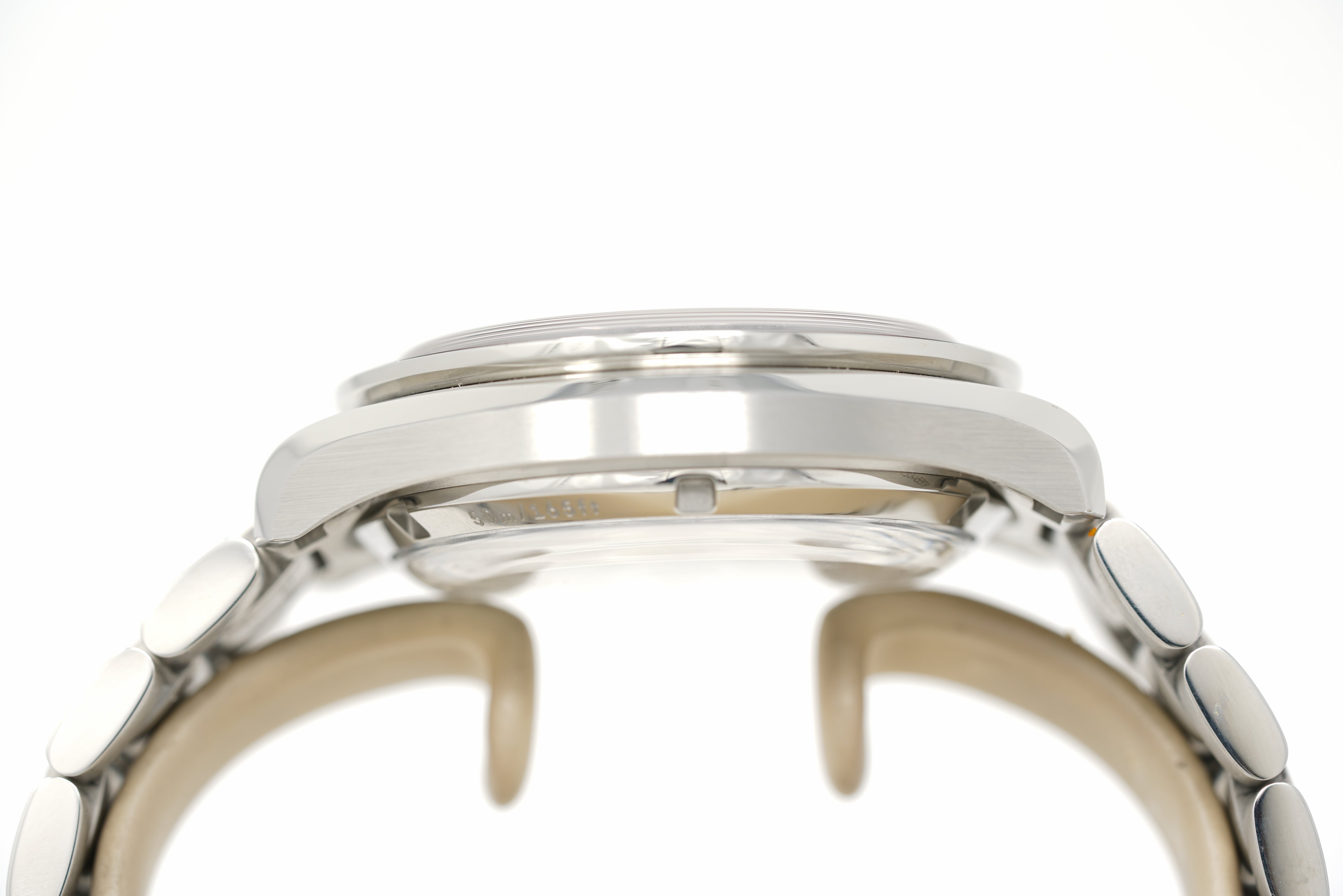 This pre-owned watch is in 94% condition due to faint marks on the sides and back of the case. The bracelet is in 89% condition due to slight marks on the links and clasp. Originally purchased in July 2025, this watch comes with its inner and outer box, instruction manual, warranty card, master chronometer card, pictogram card, hangtag, and the one-year Topper Pre-Owned Select warranty.