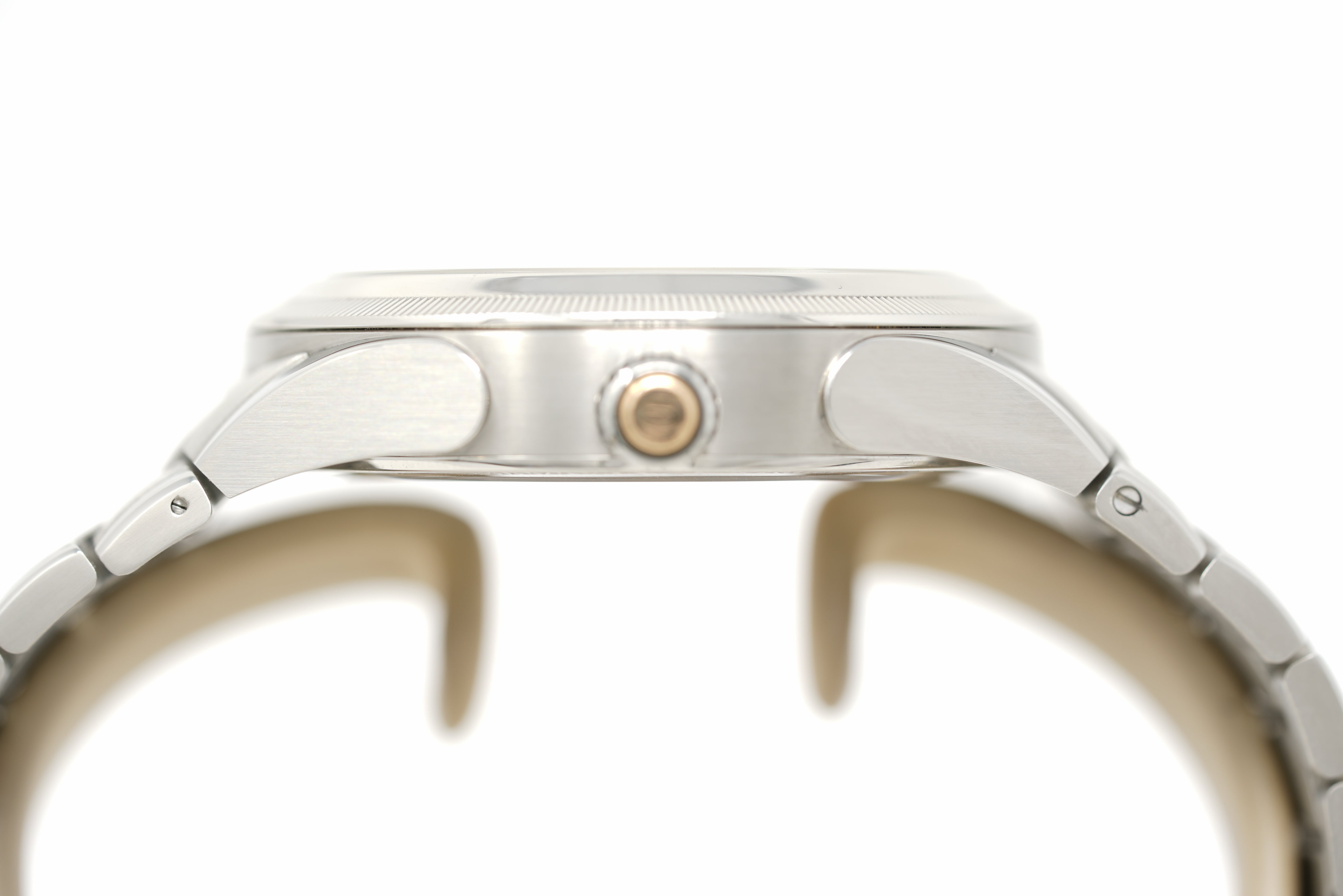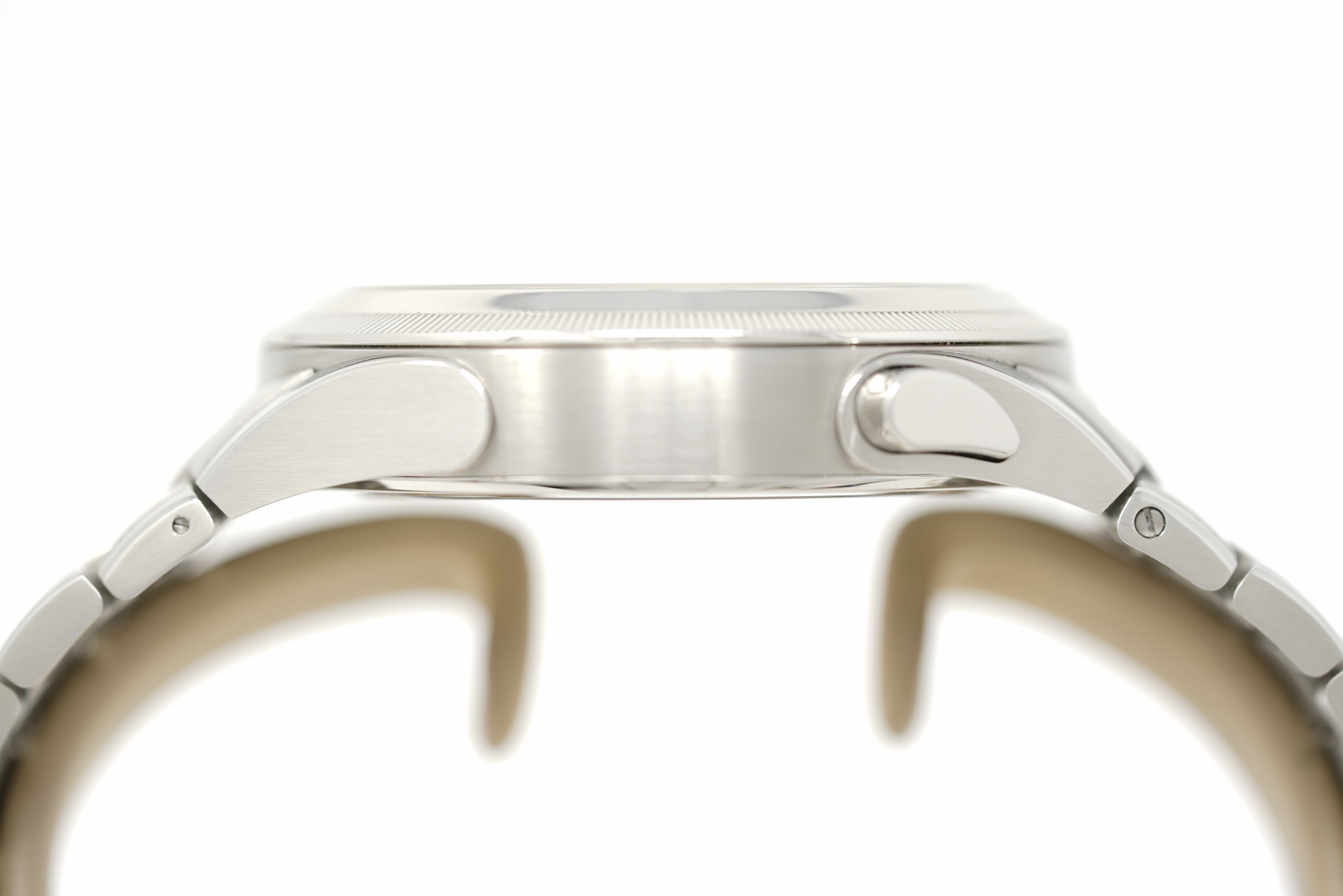 This pre-owned watch is in 88% condition due to slight marks on the bezel and throughout the case. The bracelet is in 87% condition due to slight marks on the links and clasp. The bracelet will accommodate a wrist size up to 7 and 1/2 inches. Originally purchased in June 2025, this watch comes with its inner and outer box, warranty card, and the one-year Topper Pre-Owned Select warranty.