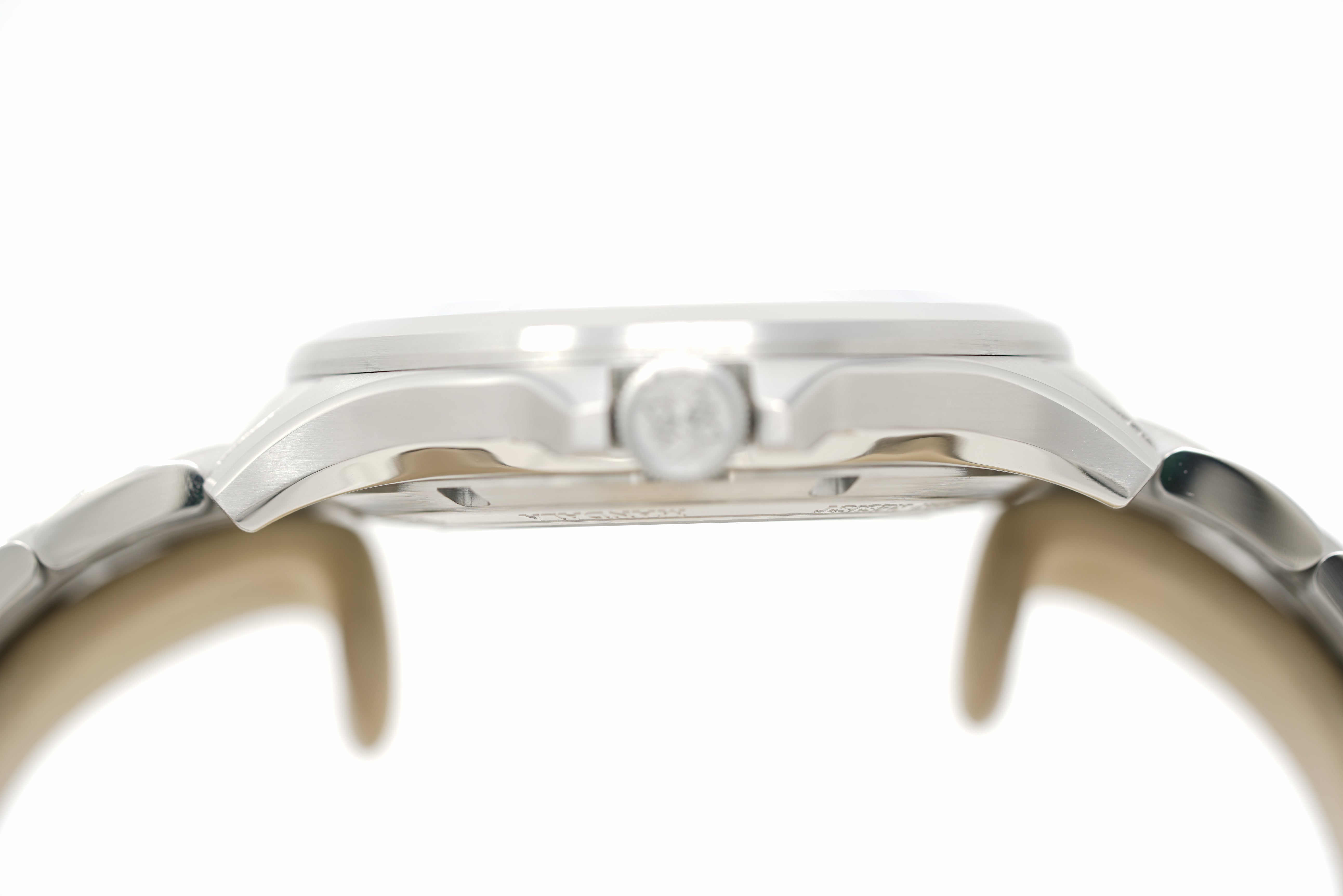 This pre-owned watch is in 95% condition due to faint marks on the sides and back of the case. The bracelet is in 94% condition due to faint marks on a few of the links and clasp. Also included is an OEM strap in 97% condition due to minor wear. Originally purchased in April 2024, this watch comes with its inner box, warranty card, and the one-year Topper Pre-Owned Select warranty.