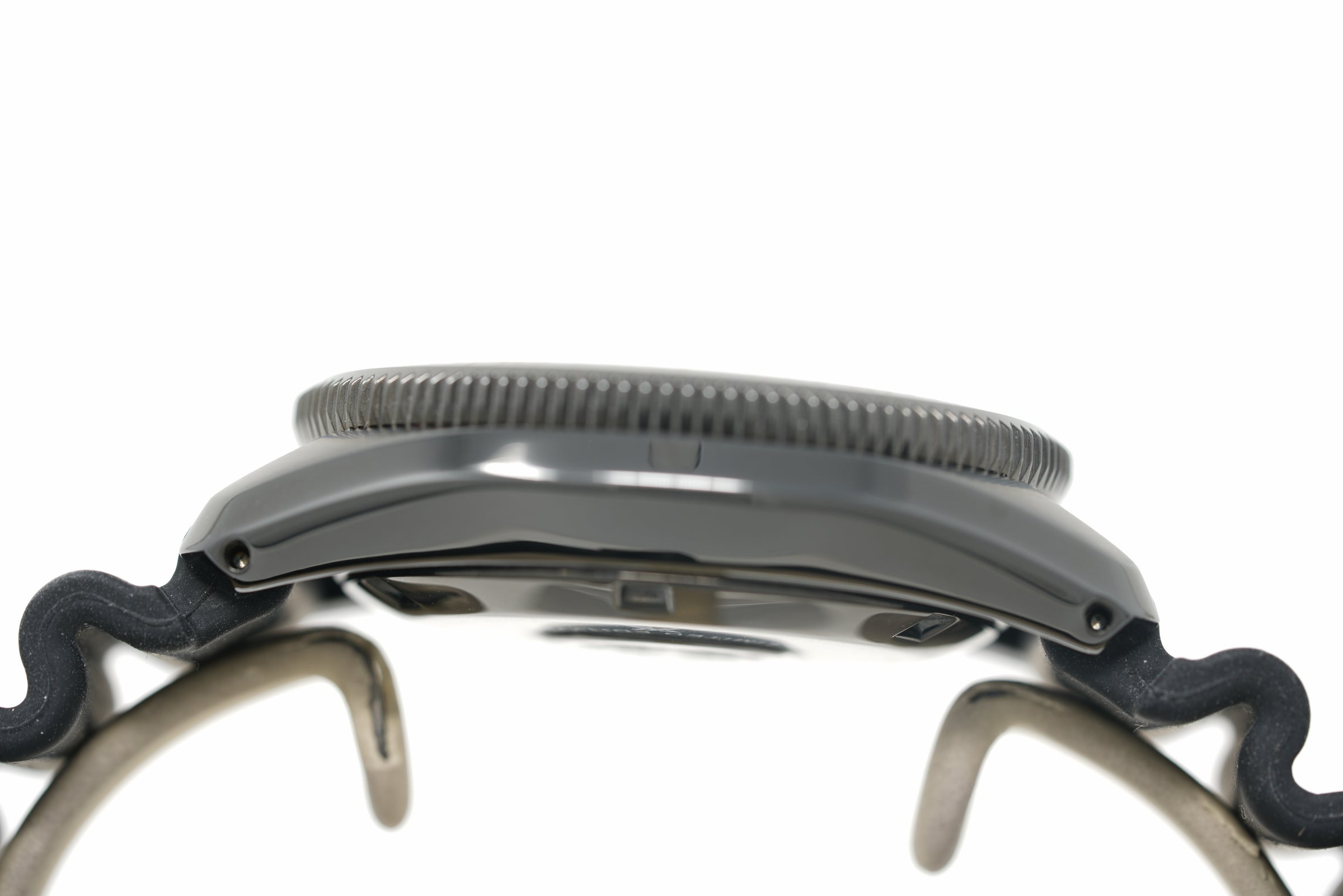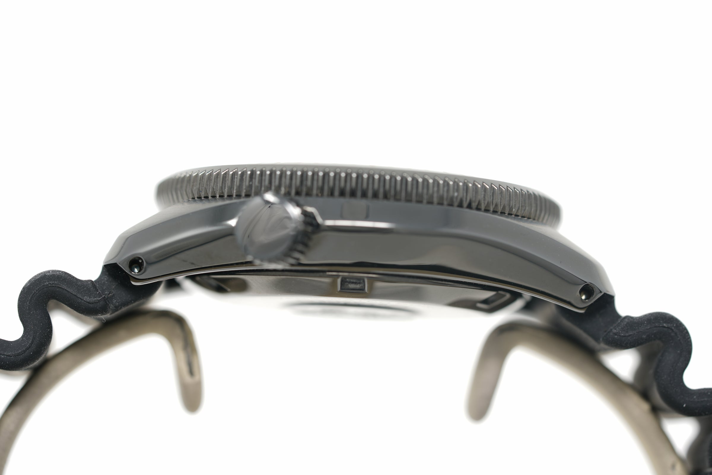 Limited to 500 pieces, this pre-owned watch is in 95% condition due to faint marks on the bezel and case. The strap is in 95% condition due to slight wear and creasing. This watch comes with its inner and outer box, instruction manual, warranty card, hangtags, Limited Edition Certificate, and the one-year Topper Pre-Owned Select warranty.