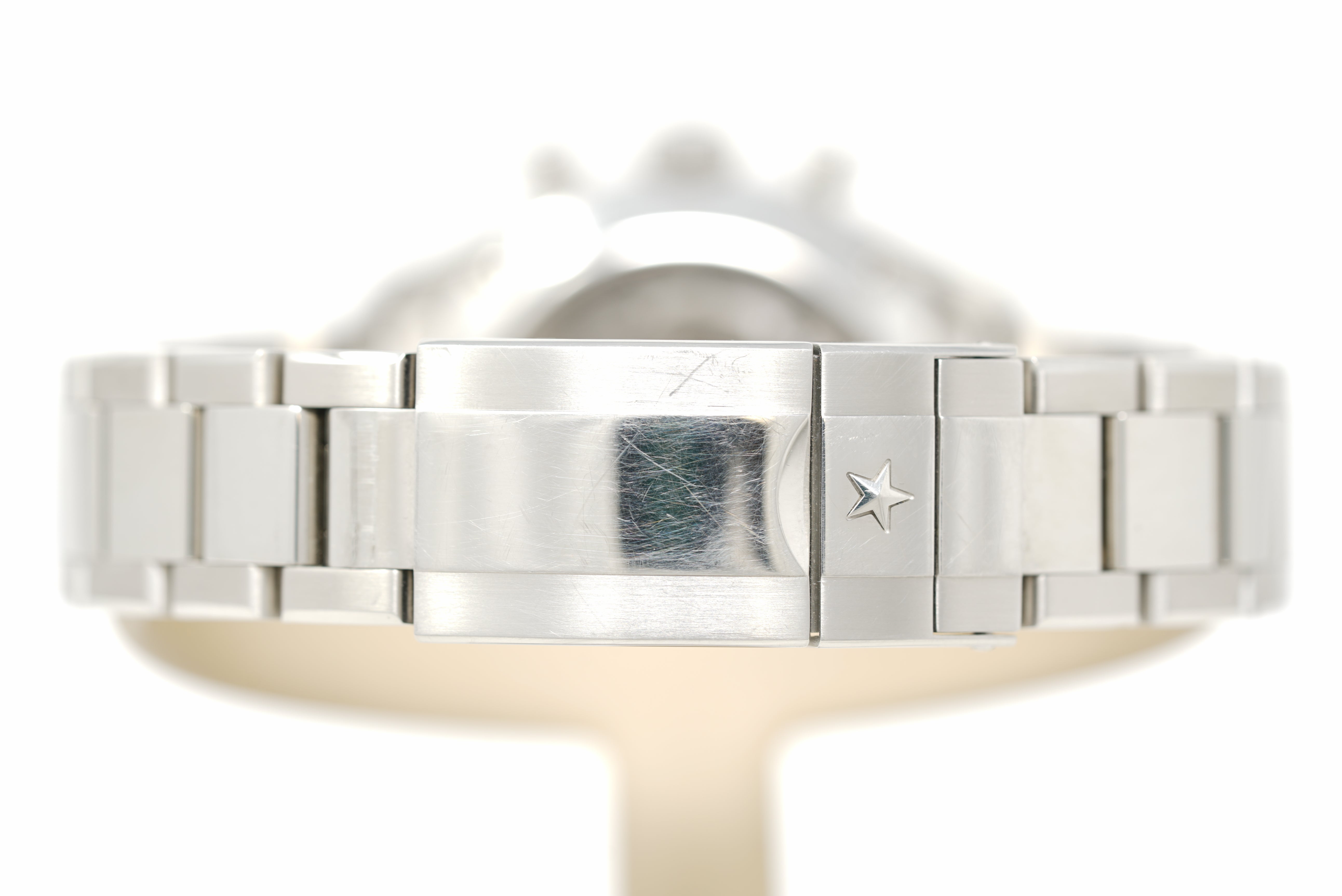 This pre-owned watch is in 84% condition due to marks on the lugs and throughout the case. The bracelet is in 78% condition due to marks on the links and clasp. Originally purchased in September 2022, this watch comes with its inner and outer box, instruction manual, warranty card, hangtag, and the one-year Topper Pre-Owned Select warranty.