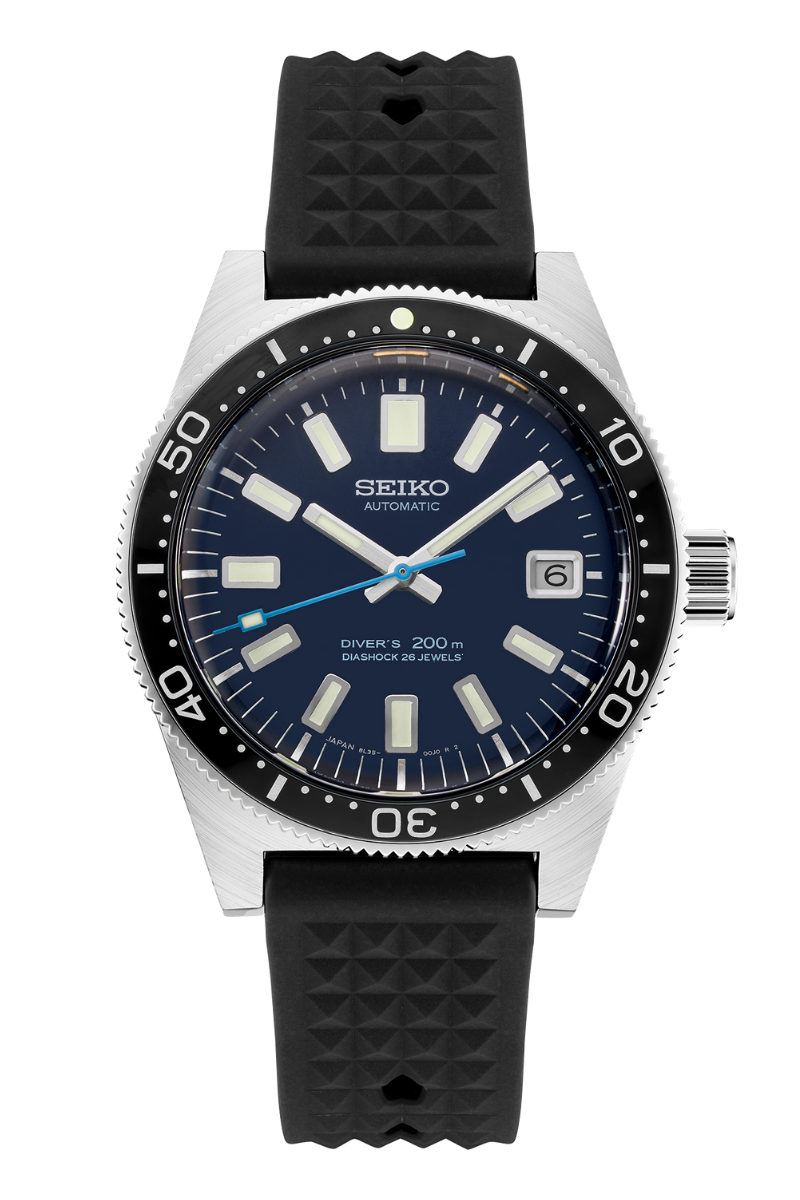 Joining a special collection marking the 55th anniversary of Seiko's first diver's watch, this limited edition reference SLA043 also celebrates Seiko's role in Antarctic exploration as essential equipment for the work of the Japanese Antarctic Research Expedition (JARE). The smoothly tapered case, crafted of Seiko's new Ever-Brilliant Steel, for an exceptional level of corrosion resistance and a lighter, brighter finish, features hairline finishing to suggest a glacier. Designed to evoke the ocean depths at the point at which blue yields to darkness, the marine blue dial features a date calendar and LumiBrite hands and markers. The 26-jewel automatic movement beats at a frequency of 28,800 vibrations per hour, with a power reserve of approximately 50 hours, and can be wound manually or automatically. Upgraded with a box-shaped anti-reflective sapphire crystal, this exceptional watch follows ISO standards for scuba diving to depths of up to 200 meters and includes a black one-way rotating elapsed timing bezel and screwdown crown and caseback, as well as a two reinforced silicone straps, in black and marine blue, paying tribute to the advanced original "TROPIC" design.