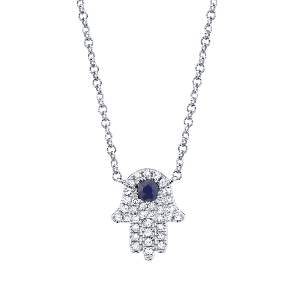 Diamond and Blue Sapphire White Gold Hamsa Necklace