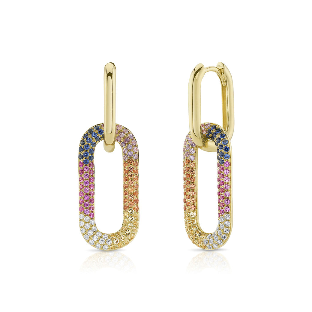 Diamond and Multi-Color Yellow Gold Pave Earrings