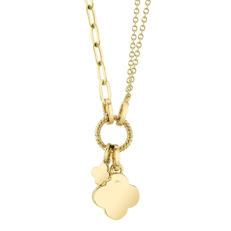 Diamond Mother of Pearl Clover Paper Clip Link Pendant Necklace