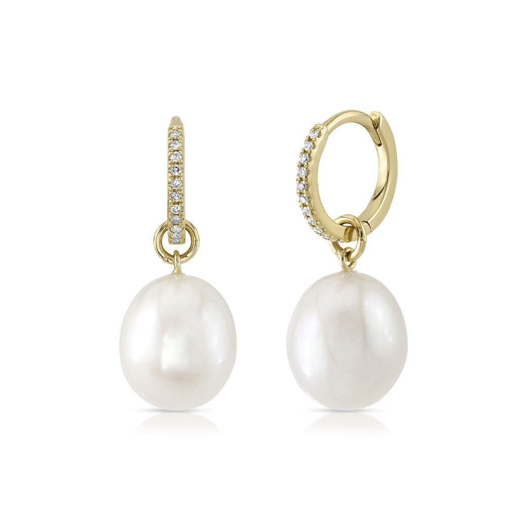 Yellow Gold Diamond and Cultured Pearl Earrings