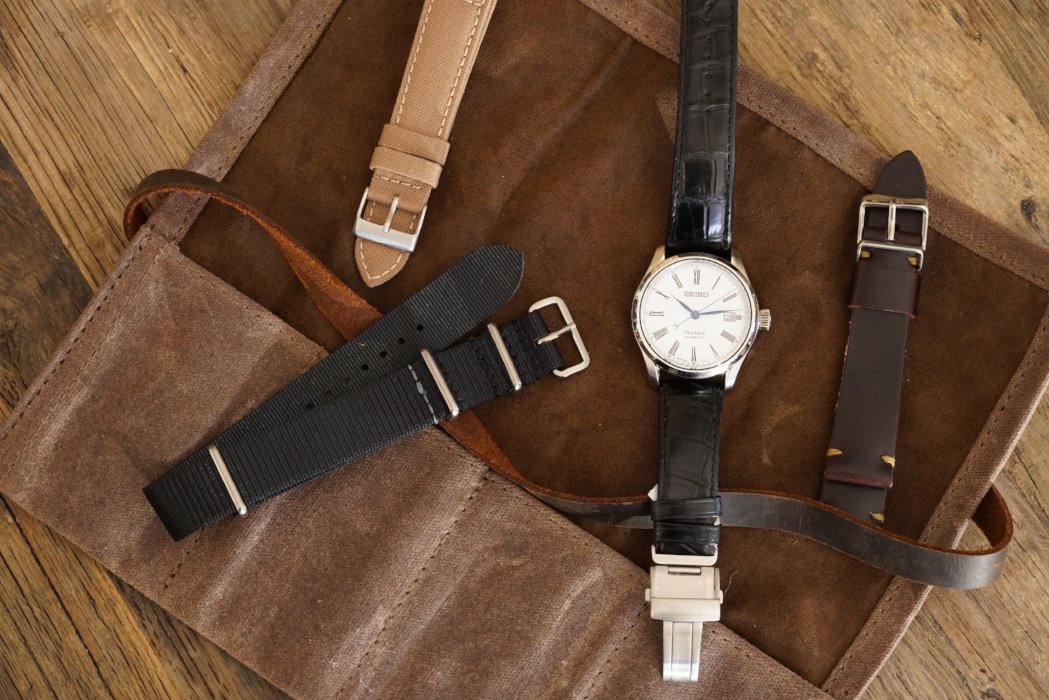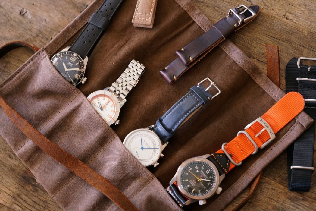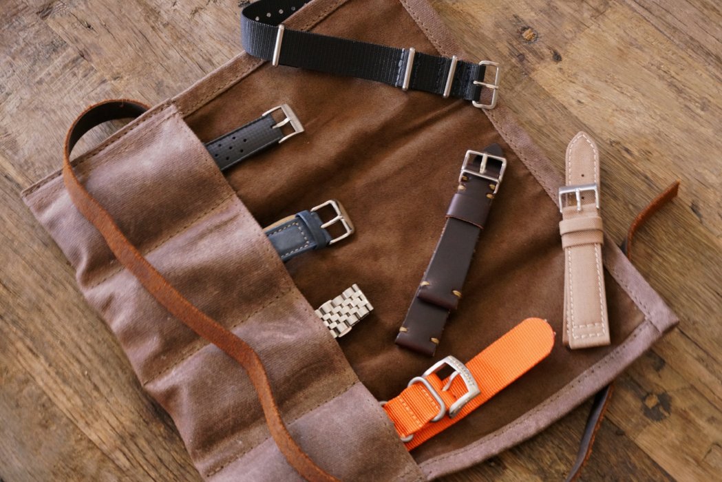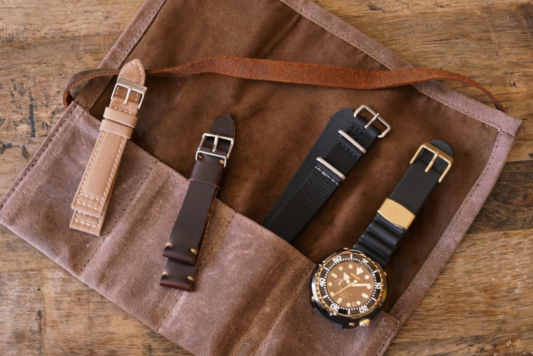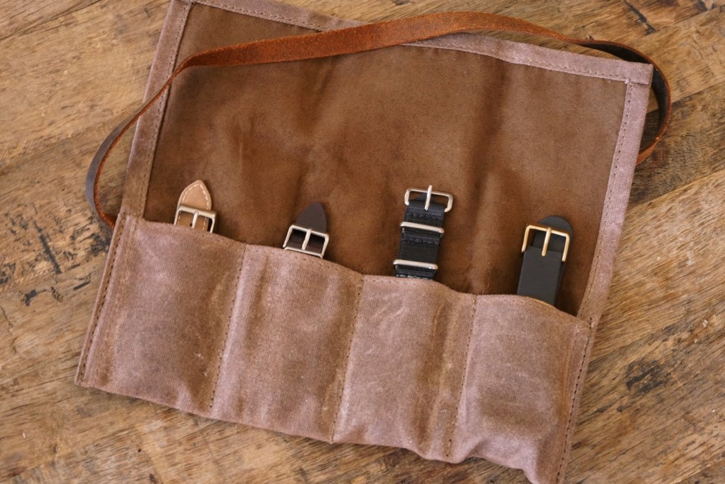 Introducing our first leather accessory that comes with three straps! Safely storing and protecting up to four watches, our heavy duty waxed canvas and suede-lined watch rolls are an effective solution to traveling with more watches than wrists allow. Hand crafted by Northern Californian artisans, each roll is cut by hand, stitched together piece by piece on traditional sewing machines to ensure crisp cuts, and contains a long lasting, snug fit for one to four watches.