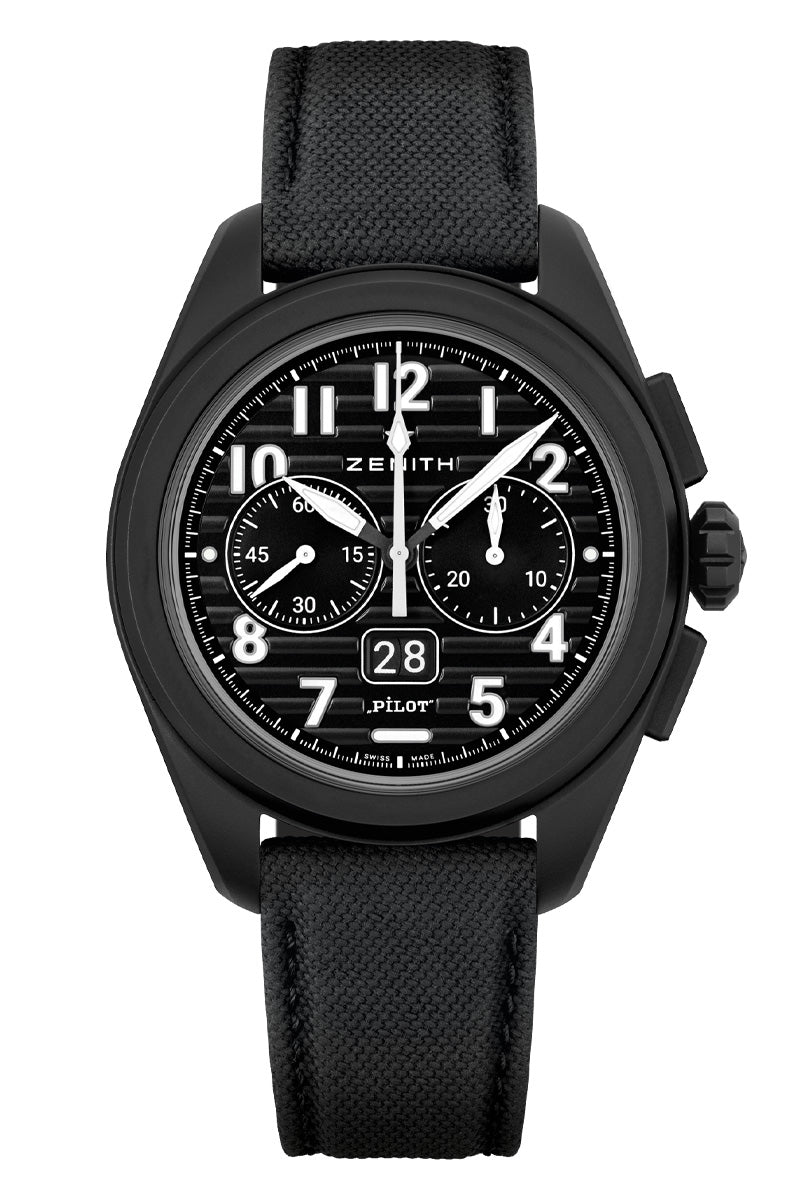 Taking on many forms over the years in a balancing act between heritage and modernism, the Zenith Pilot is the Swiss maker's most long-standing line, and one that never ceases to beguile seasoned watch aficionados as well as avid aviation enthusiasts. This next-generation Pilot Big Date Flyback blends modernity with a traditional complicated twist: a new patented big date at 6:00. Building on the Zenith legend is a stealthy, redesigned ceramic case and dial aesthetic that is at once entirely new, but in keeping with the long traditions of the brand's Pilot collection.