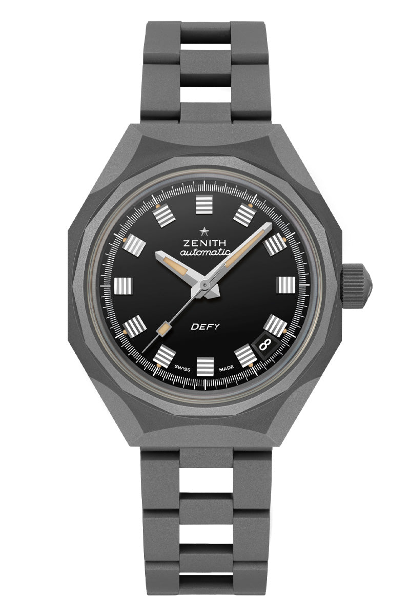 For its latest addition to the Defy Revival collection, Zenith imagines an alternate possibility for the very first Defy silhouette from 1969 in a decidedly modern and stealthy rendition. While there is some historical precedent for blacked-out ZENITH watches, which the manufacture produced in very small numbers as working prototypes as far as back as 1970, the Defy Revival Shadow is a modern creation in a vintage silhouette. In the same vein as the Chronomaster Revival Shadow that precedes it, the DEFY Revival Shadow creatively blends the historic model’s heritage with a contemporary accent through dark tones and muted textures.