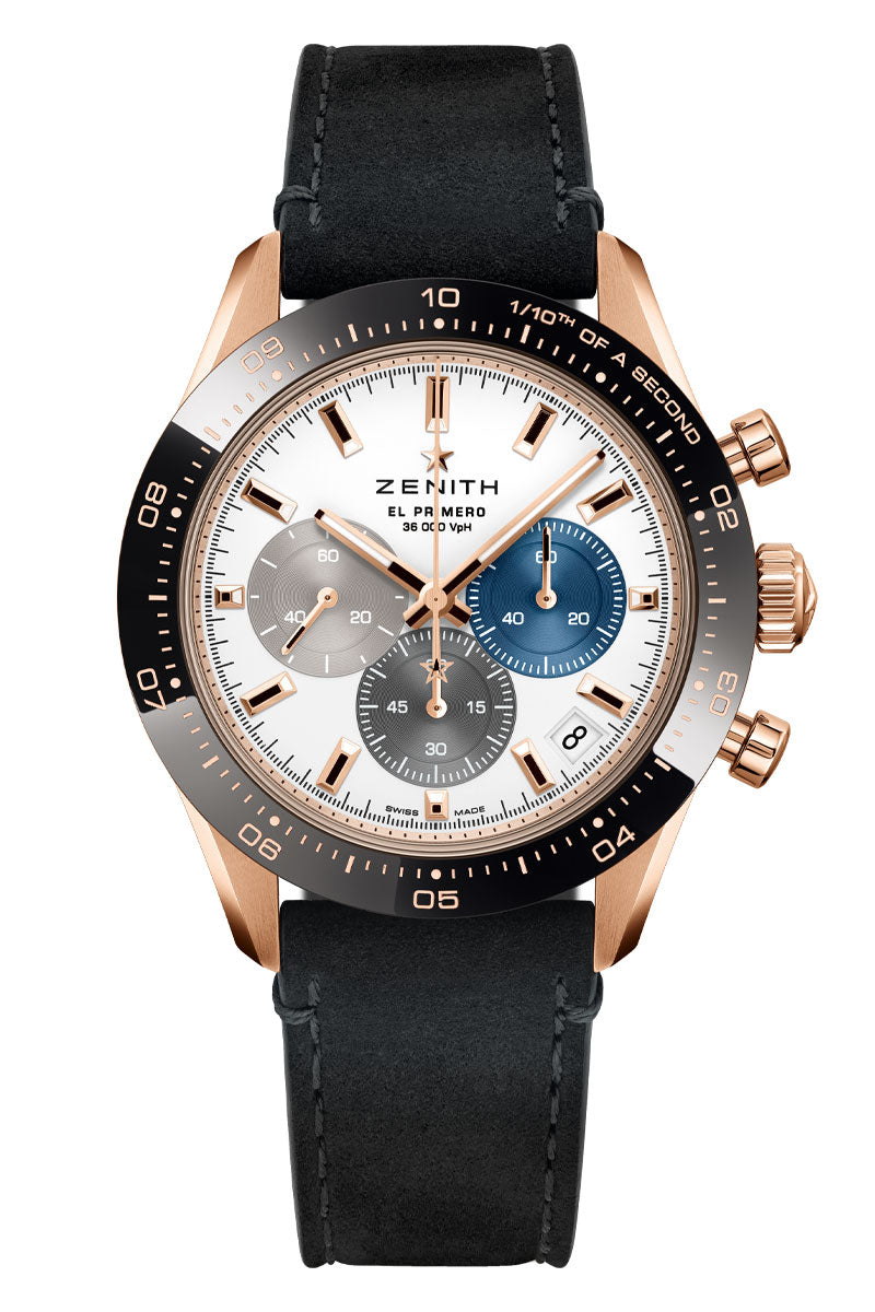 Since the earliest days of the El Primero dating back to 1969, Zenith has offered gold models of its automatic chronographs, with iconic references such as the G381 and G581. Zenith continues to keep this tradition alive with the latest generation of the El Primero calibre in the Chronomaster Sport in rose gold.